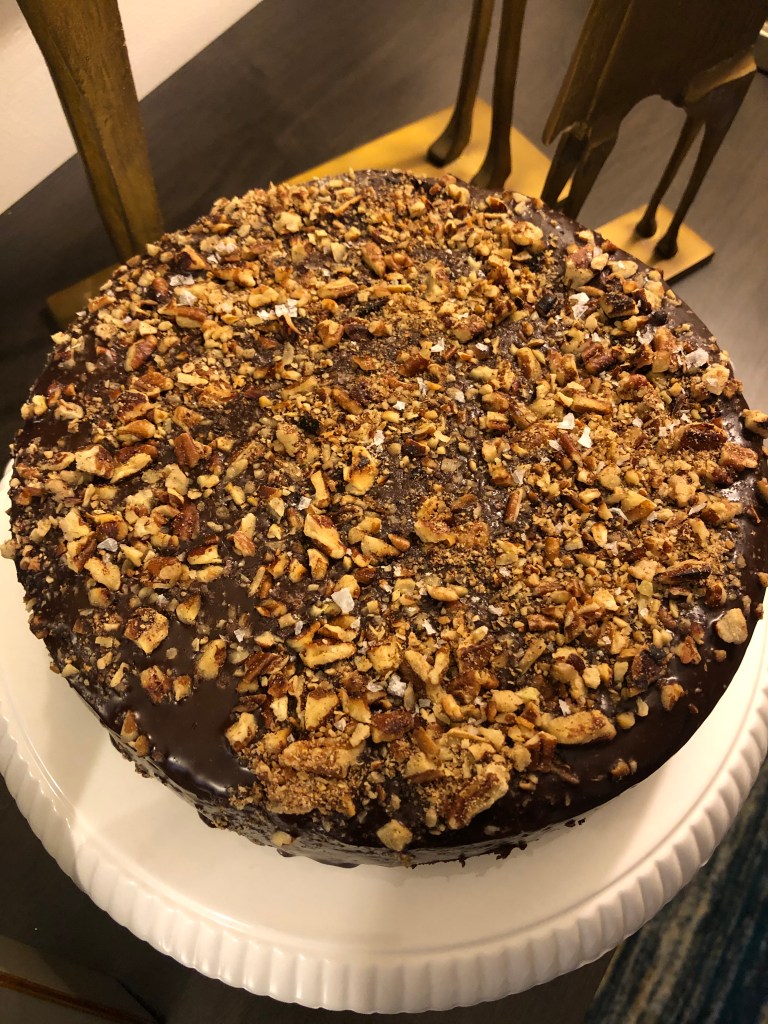 We entertained a friend last night and I made this amazing Chocolate Bourbon Pecan Cake from the Olive and Gourmando cookbook. It was decadent! We will have one last piece tonight since it’s a holiday but then the rest will be frozen in individual pieces I can throw in my partner’s lunch bag when he needs a little pick me up!