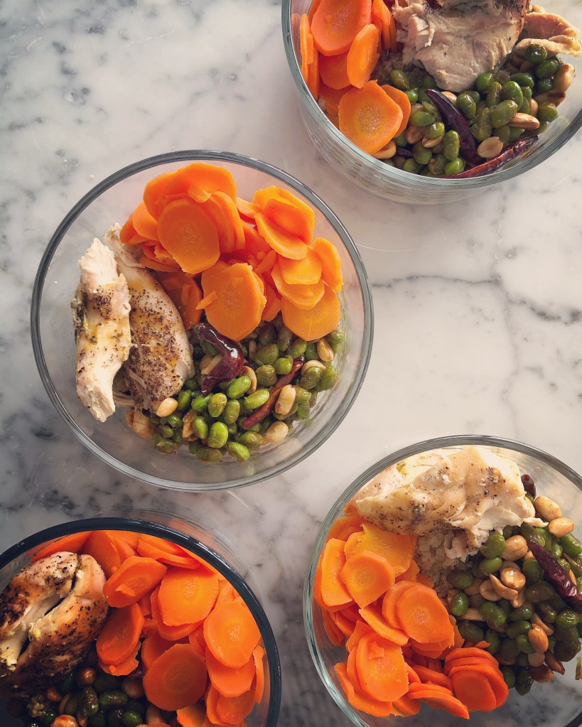This is super flavorful but lacked some protein so I added some chicken. Delicious eaten hot or cold. Link to recipe: https://www.thekitchn.com/recipe-quinoa-bowl-with-kung-pao-edamame-227120