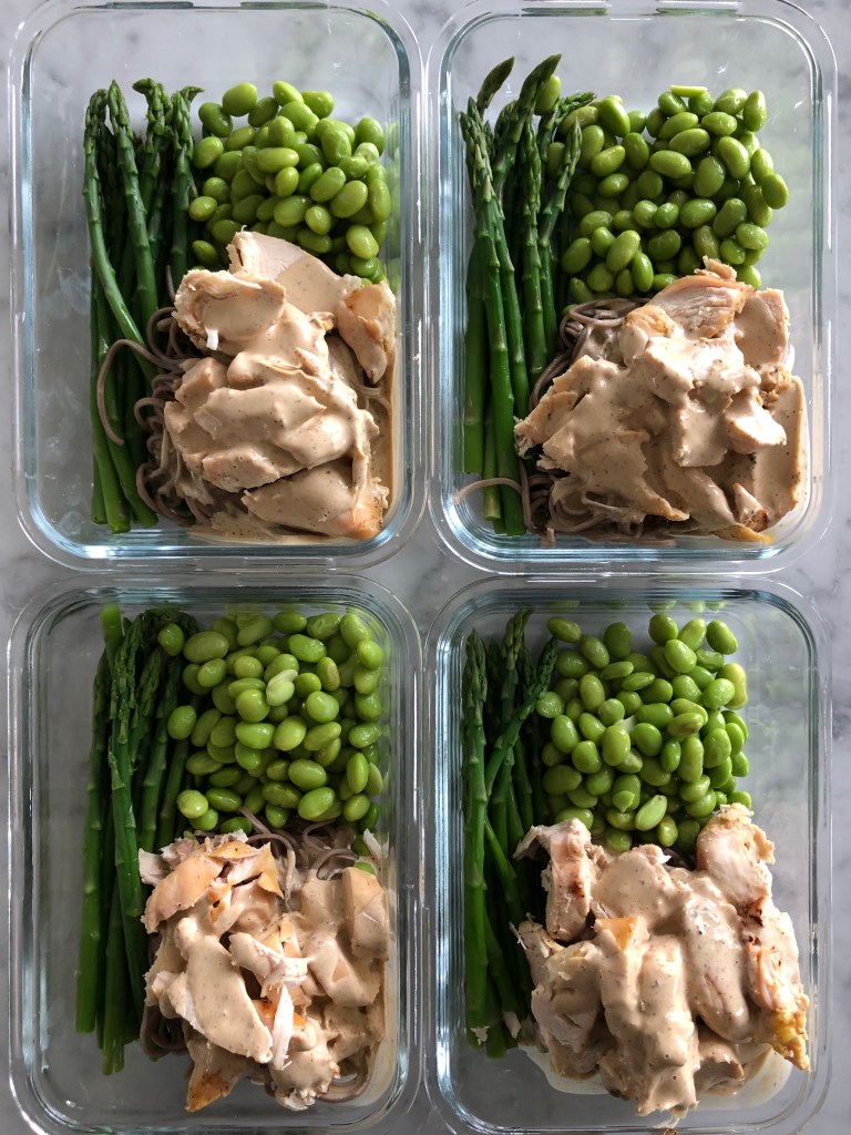 I have made this in the past and gave the sauce a couple adjustments. You can also change up the veggies but the green theme matched my need to maintain an optimistic outlook this week. Link to recipe: https://pinchofyum.com/15-minute-meal-prep-sesame-noodle-bowls